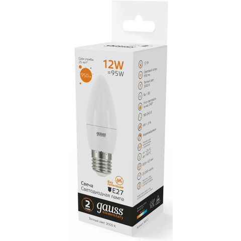 Светодиодная лампочка Gauss Elementary 3000K (12 Вт, E27) 10 шт._0