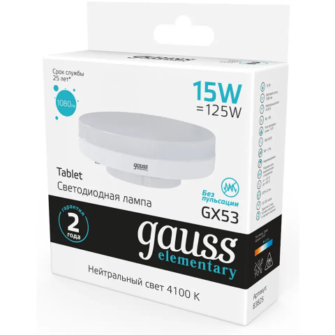 Светодиодная лампочка Gauss Elementary 4100K (15 Вт, GX53) 10 шт.