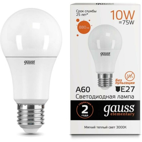 Светодиодная лампочка Gauss Elementary A60 3000K (10 Вт, E27)