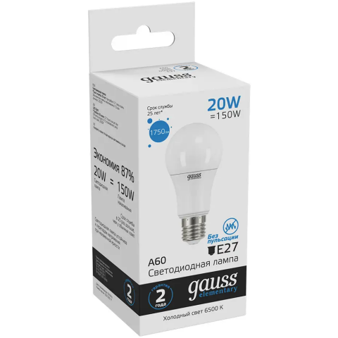 Светодиодная лампочка Gauss Elementary A60 6500K (20 Вт, E27) 10 шт._0