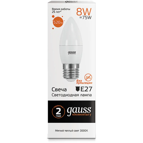 Светодиодная лампочка Gauss Elementary Candle 3000K (8 Вт, E27) 10 шт._0