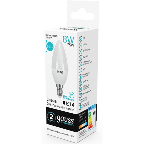Светодиодная лампочка Gauss Elementary Candle 4100K (8 Вт, E14) 10 шт._0