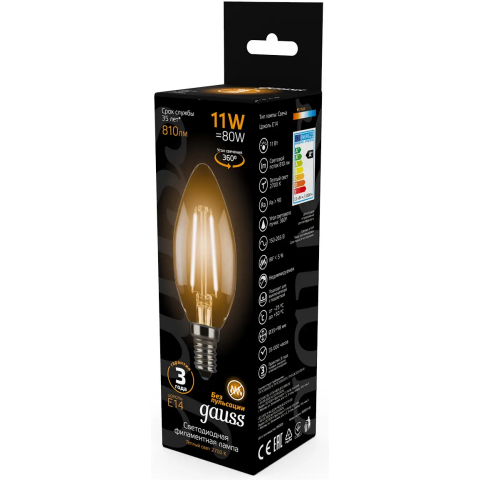 Светодиодная лампочка Gauss Filament Свеча 2700K (11 Вт, E14) 10 шт._0