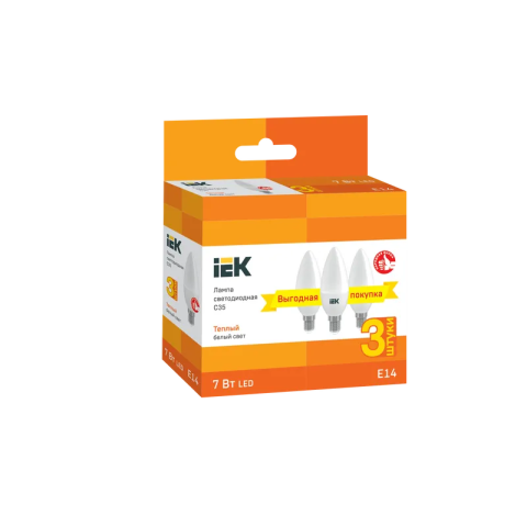 Светодиодная лампочка IEK LLE-C35-07-230-30-E14-3 (7 Вт, E14)