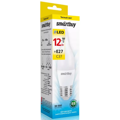 Светодиодная лампочка SmartBuy SBL-C37Can-12-30K-E27 (12 Вт, E27)