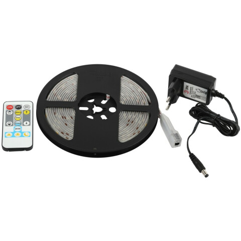 светодиодная лента длиной 5 м, тёплый белый цвет, мощность 4.5 Вт/м, цветовая температура 3000 K, световой поток 300 Лм, питание 12 В, IP20