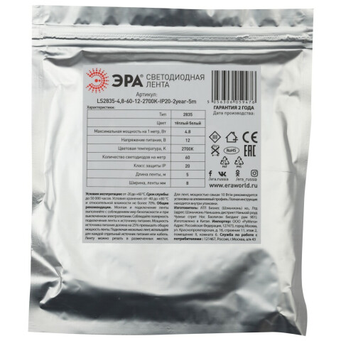 Светодиодная лента ЭРА LS2835-4,8-60-12-2700K-IP20-2year-5m_0