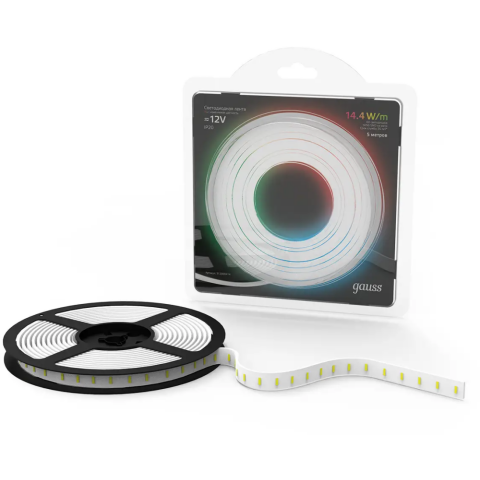 светодиодная лента длиной 5 м, RGB цвет, светодиоды SMD 5050, мощность 14.4 Вт/м, питание 12 В, IP20