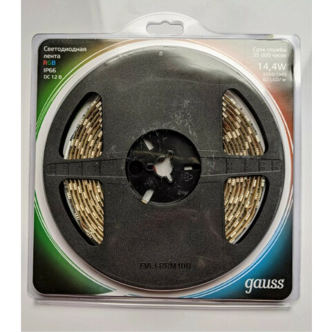светодиодная лента длиной 5 м, RGB цвет, светодиоды SMD 5050, мощность 72 Вт/м, световой поток 660 Лм, питание 12 В, IP66