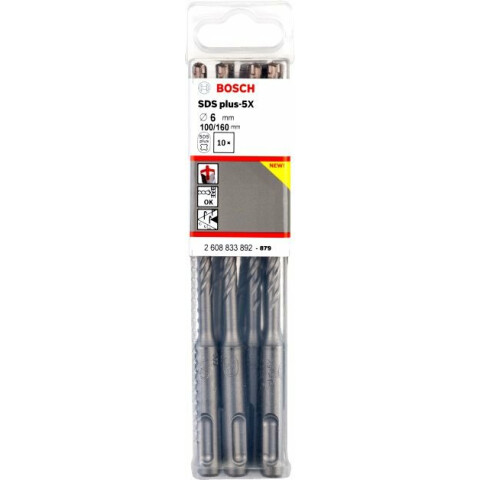 10 ударных свёрл SDS-plus-5X по бетону, диаметр 6мм, длина 160мм, рабочая длина 100мм
