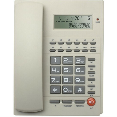 | проводной телефон, определитель номеров (АОН), встроенный дисплей, громкая связь, телефонная книжка, кнопка выключения микрофона, регулятор громкости звонка | Цена по запросу |