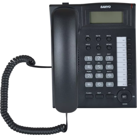 | проводной телефон, дисплей, АОН, однокнопочный набор 10 номеров, спикерфон, повторный набор номера, тональный набор, кнопка выключения микрофона | 373 смн. |