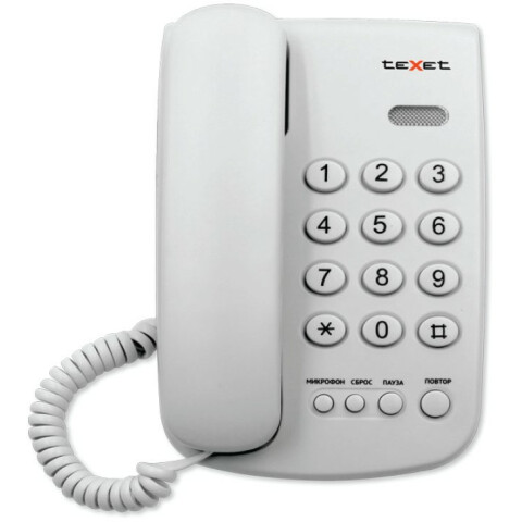 Бренд: Texetпроводной телефон, повтор последнего набранного номера, регулировка громкости сигнала, световая индикация звонка, возможность настольной и настенной установки, материал: матовый пластик