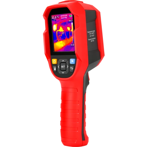 Бренд: UNI-Tтепловизор, 2.8" экран 320x240 с обновлением 9 Гц, разрешение сенсора IR: 160x120, диапазон измерений: -10°C .. +400°C, 7 цветовых градаций отображаемых температур, до 7 часов автономной работы, IP65