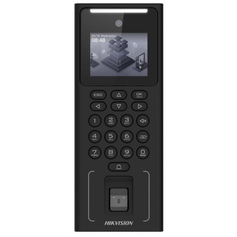 Бренд: Hikvisionтерминал доступа с распознаванием лиц, 2.4" LCD-экран (320x240), 2 МП объектив, 500 изображений лиц, 3000 карт, 3000 отпечатков пальцев и 150000 событий, поддержка протоколов ISAPI и ISUP 5.0, встроенный бипер, интерфейсы: USB, RJ-45, питание от сети
