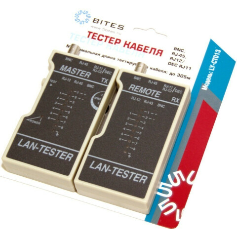 Бренд: 5bitesтестер для телефонного, коаксиальных кабелей, а так же кабелей на основе витых пар: UTP/STP RJ-45, BNC, TEL RJ11/12, область применения: обнаружение ошибок в схеме разводки, замыканий, обрывов, кросс-соединений, макс. длина кабеля: 305 м