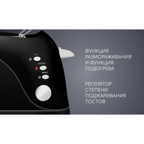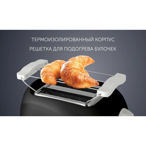 750 Вт, количество тостов: 2, функция размораживания, ненагревающийся корпус, поддон для крошек, решетка для подогрева булочек