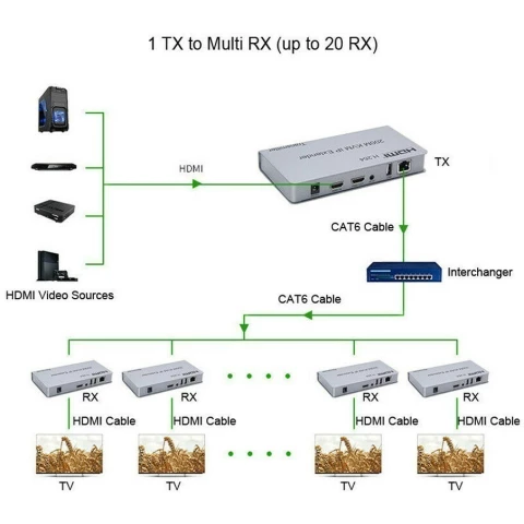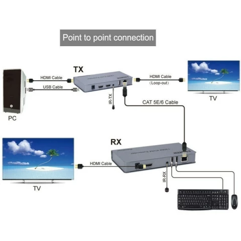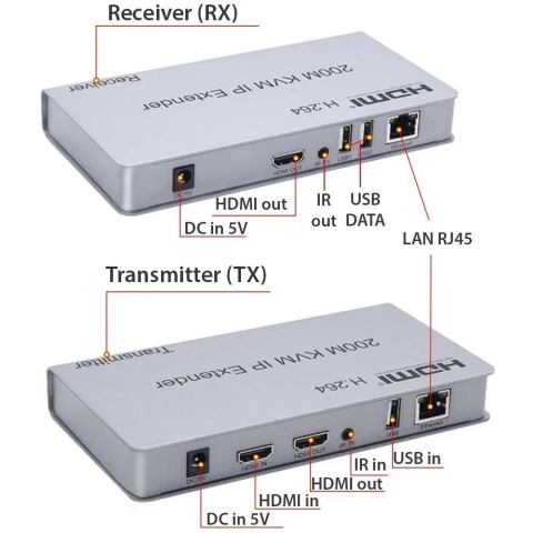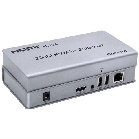 HDMI KVM удлинитель, HDMI+USB до 200 м по витой паре Cat5e/6, HDMI 1.3, 1080p@60Hz, HDCP, передача ИК сигнала управления, пит. от вн.БП 5В/2А, метал.корп.