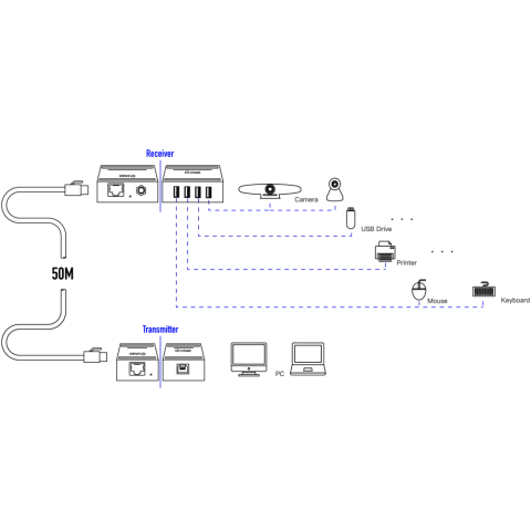 комплект удлинителя сигнала USB 2.0, до 50 метров по витой паре кат. 5e/6/7