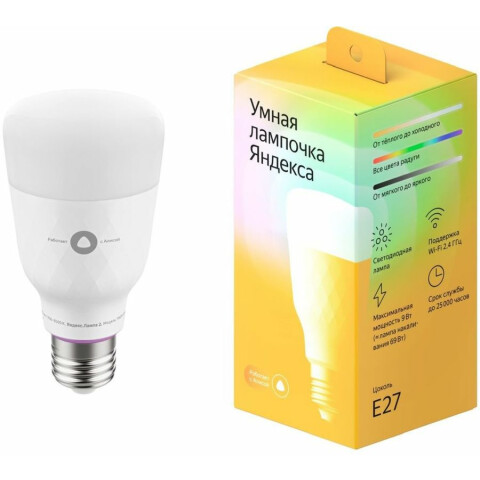 умная лампочка, цоколь E27, мощность 9 Вт, цветовая температура 1700-6500 K, поддержка RGB, управление: Wi-Fi, до 25000 ч работы