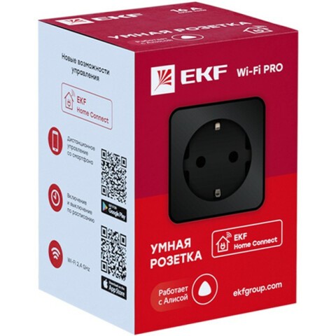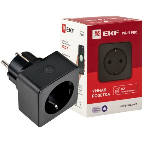 Бренд: EKFумная розетка, подключение: Wi-Fi, мощность 4000 Вт, ток 16 A