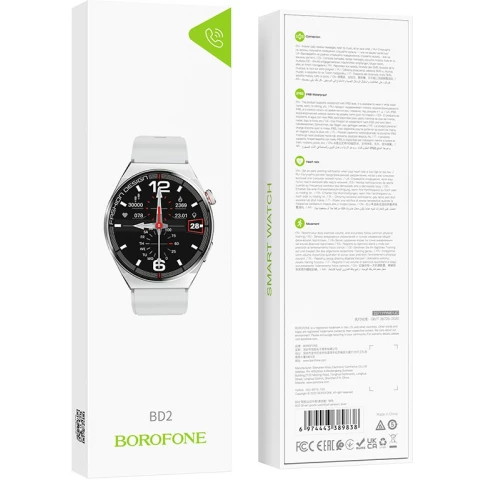 Бренд: Borofoneумные часы, экран 1.28", IPS, 240x240, Bluetooth, аккумулятор 270 мАч, cовместимость с Android, iOS, влагозащита