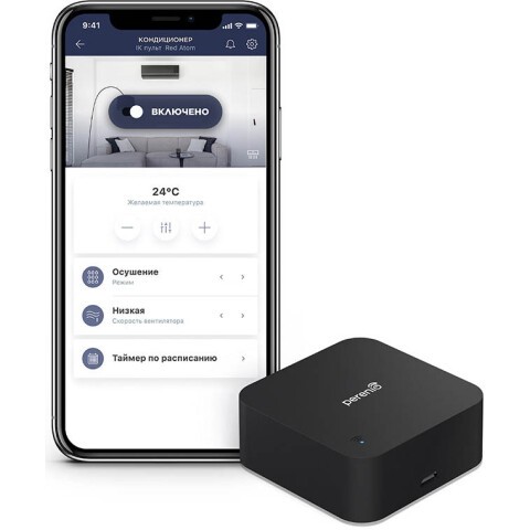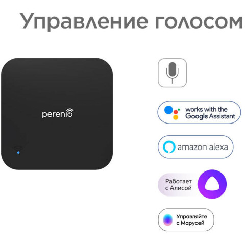 умный инфракрасный пульт, Android 5.1 и выше, iOS 12 и выше, Wi-Fi 802.11 b/g/n, 2.4 ГГц, управление через приложение Perenio Smart и/или голосовые помощники (Yandex Smart Home (Алиса), Google Home)
