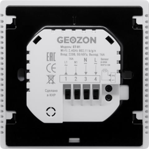 умный термостат, мобильное приложение GEOZON Home, совместимость iOS, Android, Wi-Fi, номинальный ток 16 А, номинальное напряжение 220В