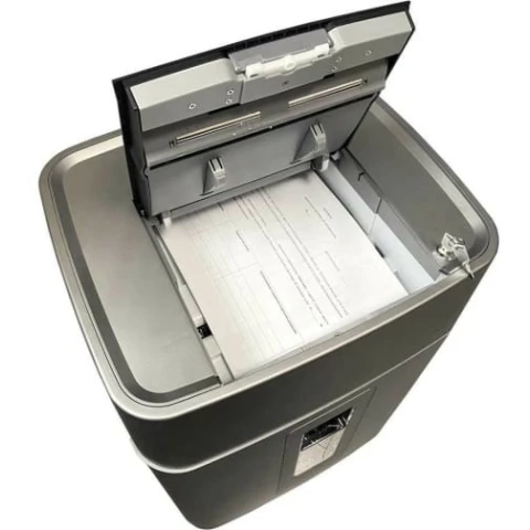 секретность P-5, нарезка фрагментами по 1.9x15 мм, до 10 лист., корзина 45 л, уничтожение карт, скоб