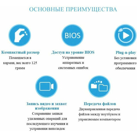 USB адаптер консоли на базе ноутбука (комплект), преобр. ноутбук в ультрамоб. консоль для серверов, терминалов, банкоматов; мгн. доступ на уровне BIOS обеспечивает возможность полного упр. сервером, двунапр. передача файлов