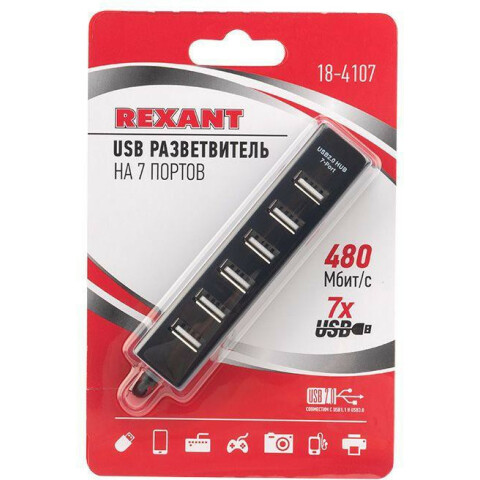 пассивный USB-концентратор, 7x USB 2.0, подключение через USB 2.0