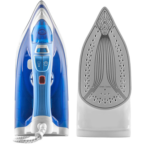 мощность: 2400 Вт, расход при постоянной подаче пара: 30 г/мин, расход при паровом ударе: 140 г/мин, объём резервуара для воды: 300 мл, подошва: керамика