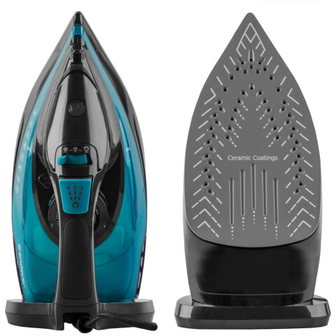 мощность: 2400 Вт, расход при постоянной подаче пара: 50 г/мин, расход при паровом ударе: 150 г/мин, объём резервуара для воды: 330 мл, подошва: керамика