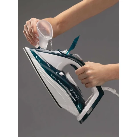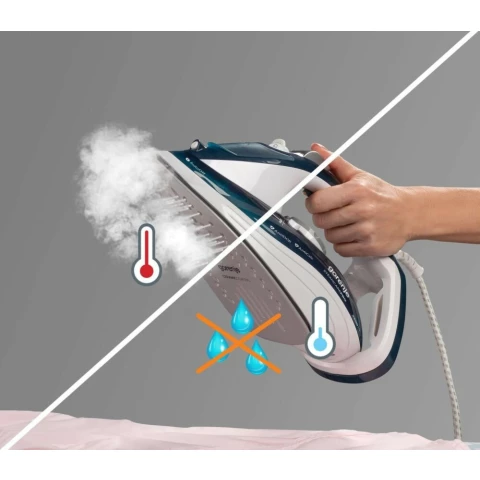мощность: 2800 Вт, расход при постоянной подаче пара: 35 г/мин, расход при паровом ударе: 100 г/мин, объём резервуара для воды: 350 мл, подошва: керамика