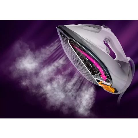 мощность: 2800 Вт, расход при постоянной подаче пара: 50 г/мин, расход при паровом ударе: 220 г/мин, объём резервуара для воды: 300 мл, подошва: SteamGlide Elite