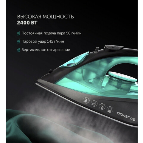 Бренд: Polarisмощность: 2400 Вт, расход при постоянной подаче пара: 50 г/мин, расход при паровом ударе: 145 г/мин, объём резервуара для воды: 270 мл, подошва: керамика (PRO 5 Ceramic)