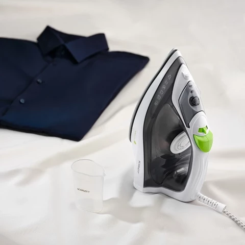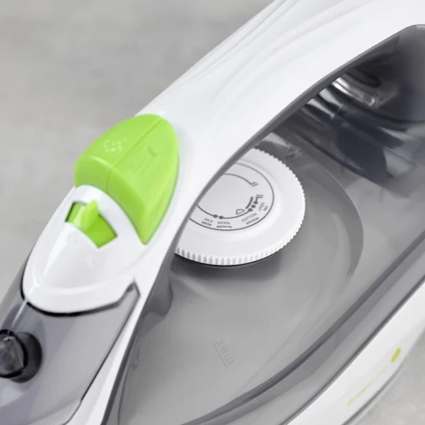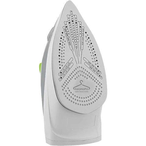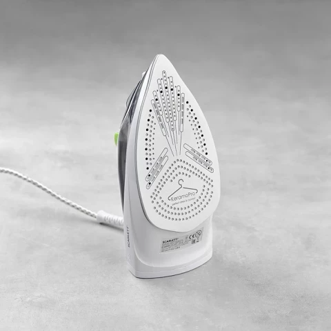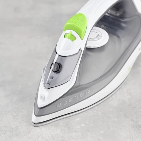 мощность: 2400 Вт, расход при постоянной подаче пара: 35 г/мин, расход при паровом ударе: 140 г/мин, объём резервуара для воды: 280 мл, подошва: керамика (KeramoPro)