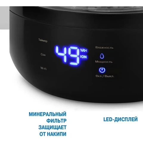 увлажнитель воздуха ультразвуковой, обслуживаемая площадь 20 кв.м, регулировка скорости работы, электронное управление, таймер, дисплей, Wi-Fi, объем резервуара для воды 4 л