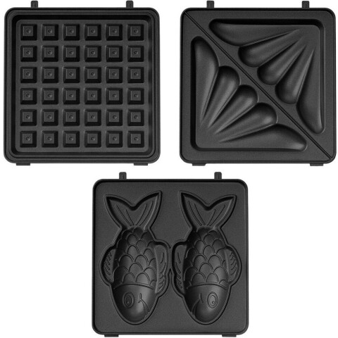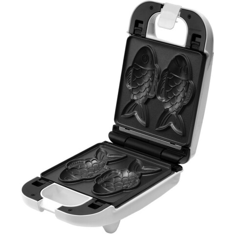 мощность 750 Вт, механическое управление, пластиковый корпус, число режимов: 1, антипригарное покрытие, индикатор работы, 3 сменные двойные формы для сэндвичей, венских вафель, печенья в форме рыбки