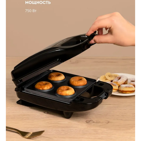 вафельница, антипригарное тефлоновое покрытие, мощность 750 Вт, форма: круг, прямоугольник; корпус: термостокий пластик, ненагревающиеся ручки, индикатор нагрева
