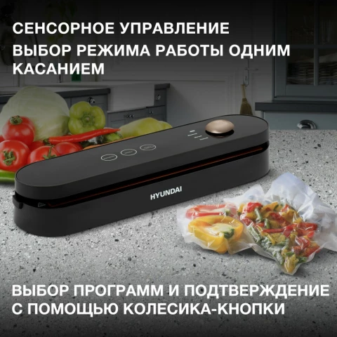 мощность: 110 Вт, степень вакуума 0.6 бар, тип управления: сенсорный+колесо, ширина шва пайки: 30 см, 10 пакетов 20*30 см