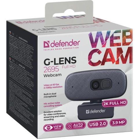 веб-камера с матрицей 3.9 млн пикс., разрешение видео 2592x1520, 60 Гц, подключение через USB 2.0, микрофон, автоматическая фокусировка, цифровой зум 4x, шторка, крепление на мониторе