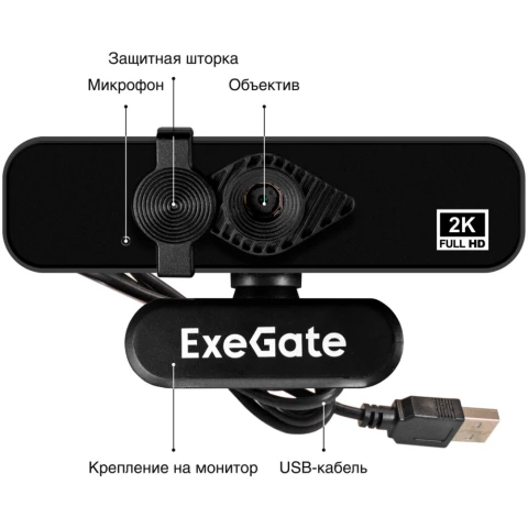 веб-камера с матрицей 5 млн пикс., разрешение видео 2592x1944, 30 Гц, подключение через USB 2.0, микрофон, автоматическая фокусировка, шторка