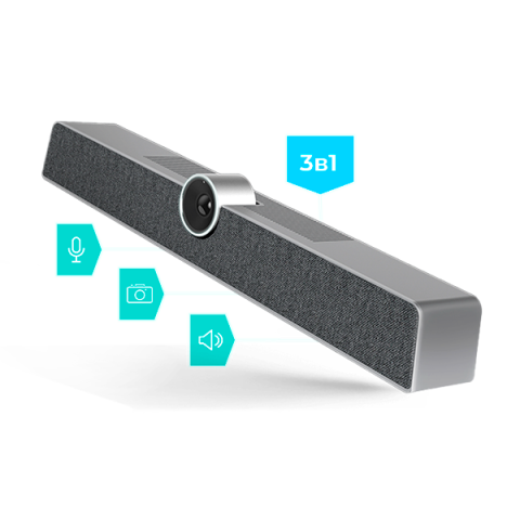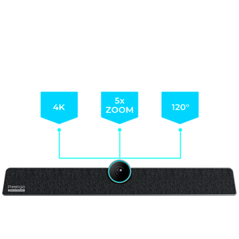 UHD веб-камера с 5-кратным цифровым зумом, качество съёмки 4K, угол съемки 120°, интерфейс: USB-C, поддержка H.264, M-JPEG, микрофонный массив: 6 микрофонов, рабочая дистанция: до 8м, динамик 8 Вт