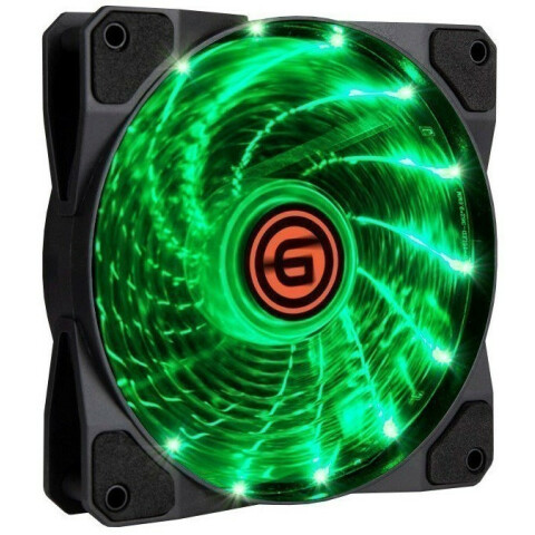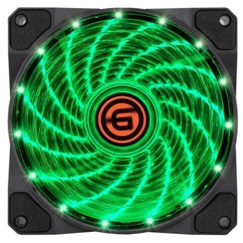 Бренд: Ginzzu1 вeнтилятор для корпуса, 120 мм, 1200 об/мин, 41.3 CFM, 15 дБ, 4-pin Molex, зеленая подсветка
