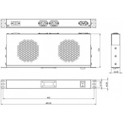 модуль вентиляторный 19", 1U, глубиной 170 мм, с термостатом и 2-мя вентиляторами, номинальная мощность 35.2 Вт, датчик температуры, кабель питания C13-Schuko 1.8 м, цвет серый (RAL 7035)