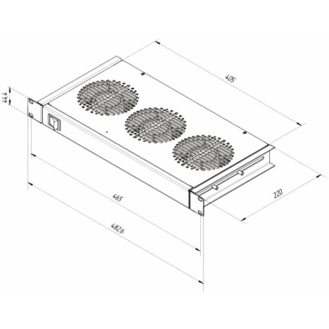 вентиляторный модуль 1U, 3 вентилятора, 483x45x220мм, выключатель питания, вход: компьютерная розетка (IEC-320-C14), без кабеля питания, чёрный