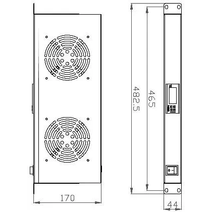 модуль вентиляторный, 1U, 2 вентилятора с терморегулятором, мощность 25-80 Вт, cкорость вращения 2600 об/мин, 482.5x44.5x170 мм