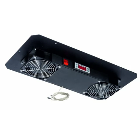вентиляторный блок для настенных шкафов серии TWC, 2 вентилятора с терморегулятором и датчиком, без шнура питания, черный