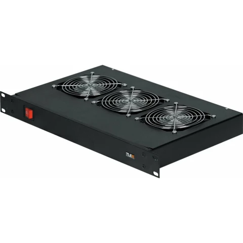 вентиляторная полка TLK, высота 1U (1.75"), 3 вентилятора, глубина 260мм, потребляемая мощность: 57 Вт, производительность: 480 куб.м./ч, напряжение питания: 220В, без шнура питания, черная